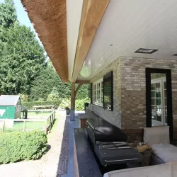 Na 10 jaar sinds de nieuwbouw was deze prachtige villa in Blaricum toe aan een grondige schilderbeurt. We hebben al het houtwerk aan de buitenzijde gecontroleerd op lekke naden en kieren, en waar nodig opnieuw gekit of gerepareerd met epoxy. Vervolgens hebben we het houtwerk voorzien van twee nieuwe lagen hoogglansverf en de kleur aangepast aan de hedendaagse trends.