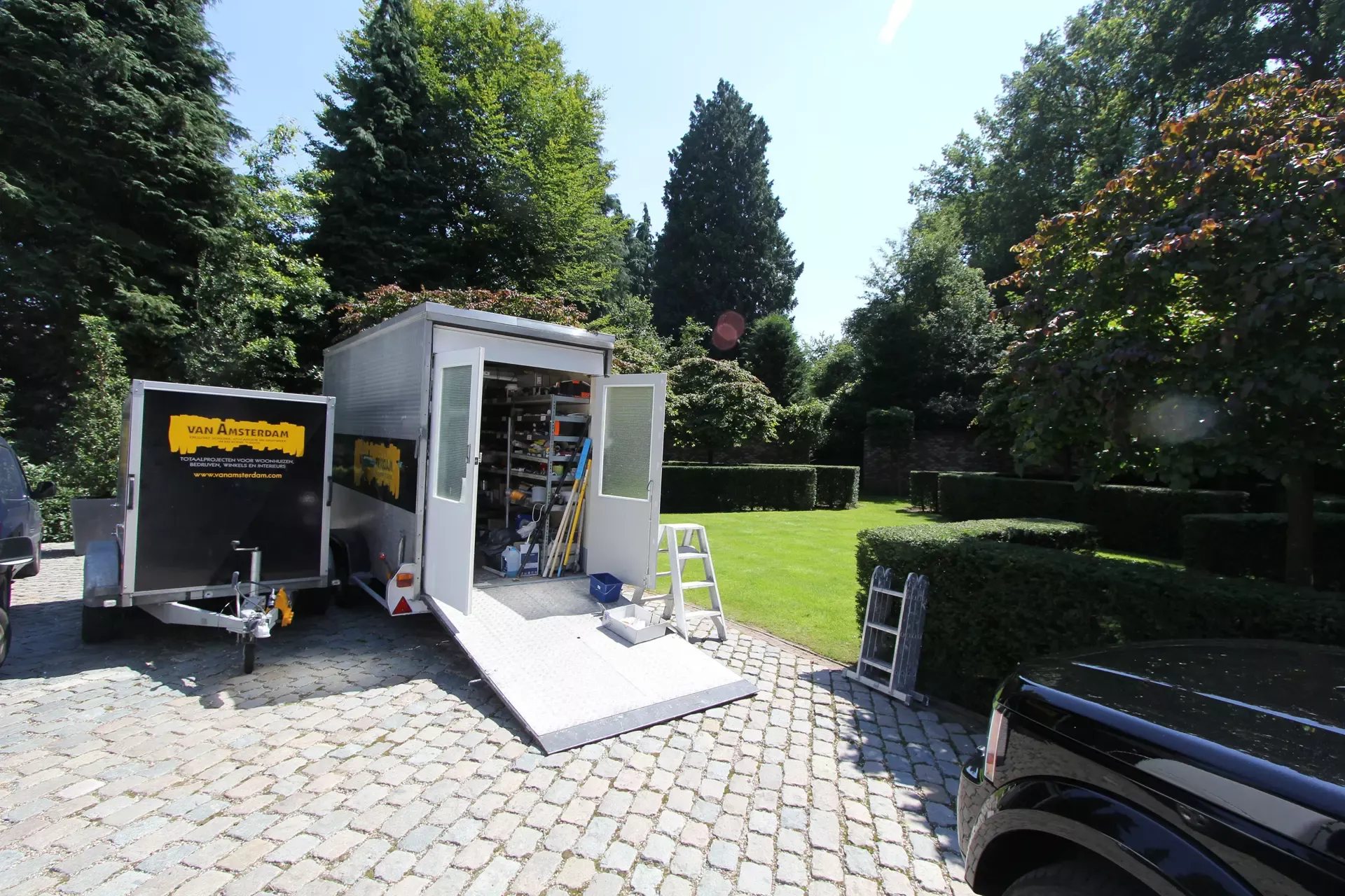 Voor de carport hebben we een tijdelijke spuitcabine ingericht om de luiken te spuiten, terwijl de rest van het houtwerk met de hand is geschilderd. Binnen hebben we alle oppervlakken gespoten voor een uniforme en strakke afwerking.